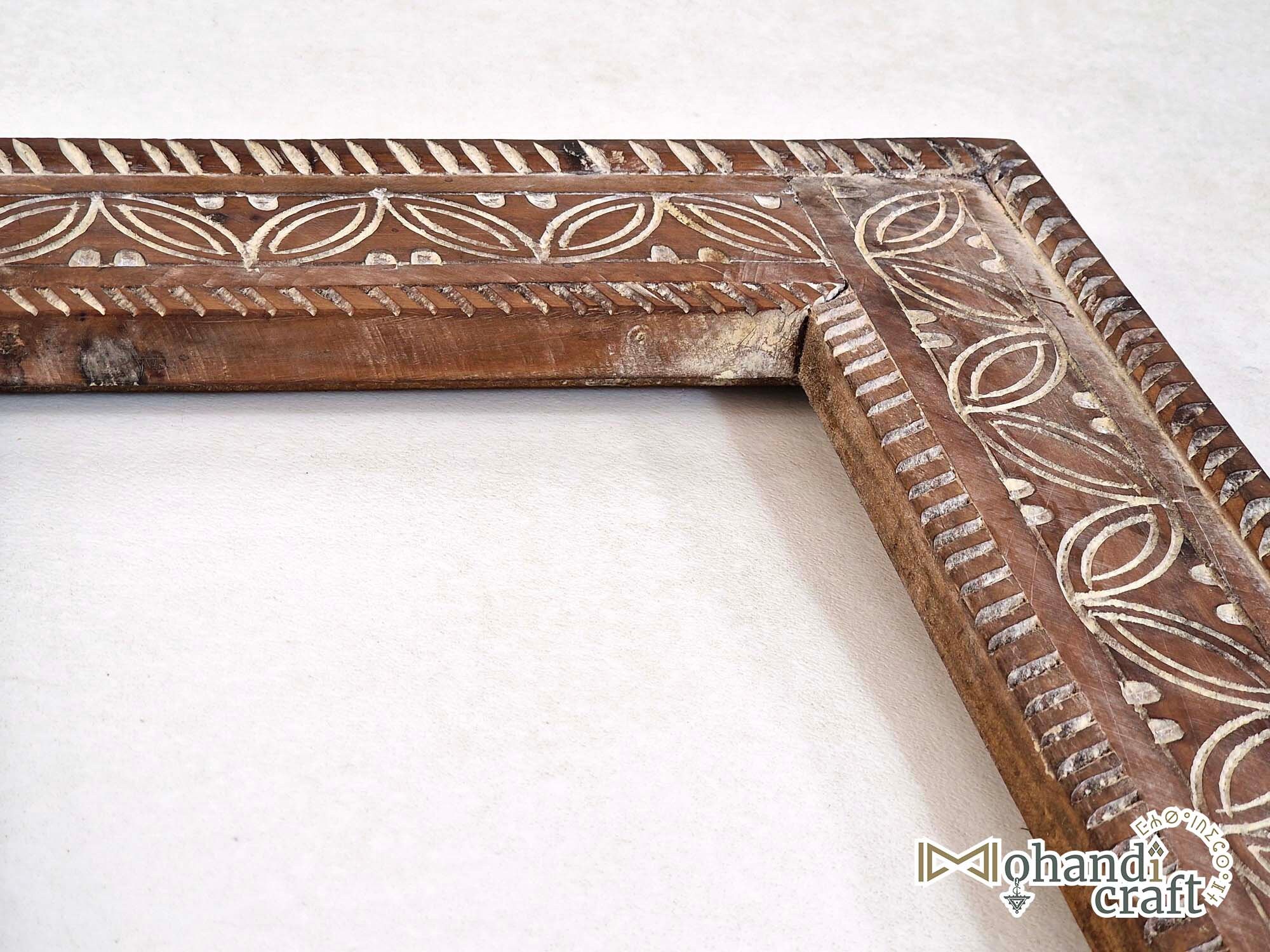RECTANGLE Moroccan MIRROR FRAME - Vintage Wooden Mirror Frame - Carved Brownish Wood Furniture - Handcrafted Mirror Frame, Rustic Home