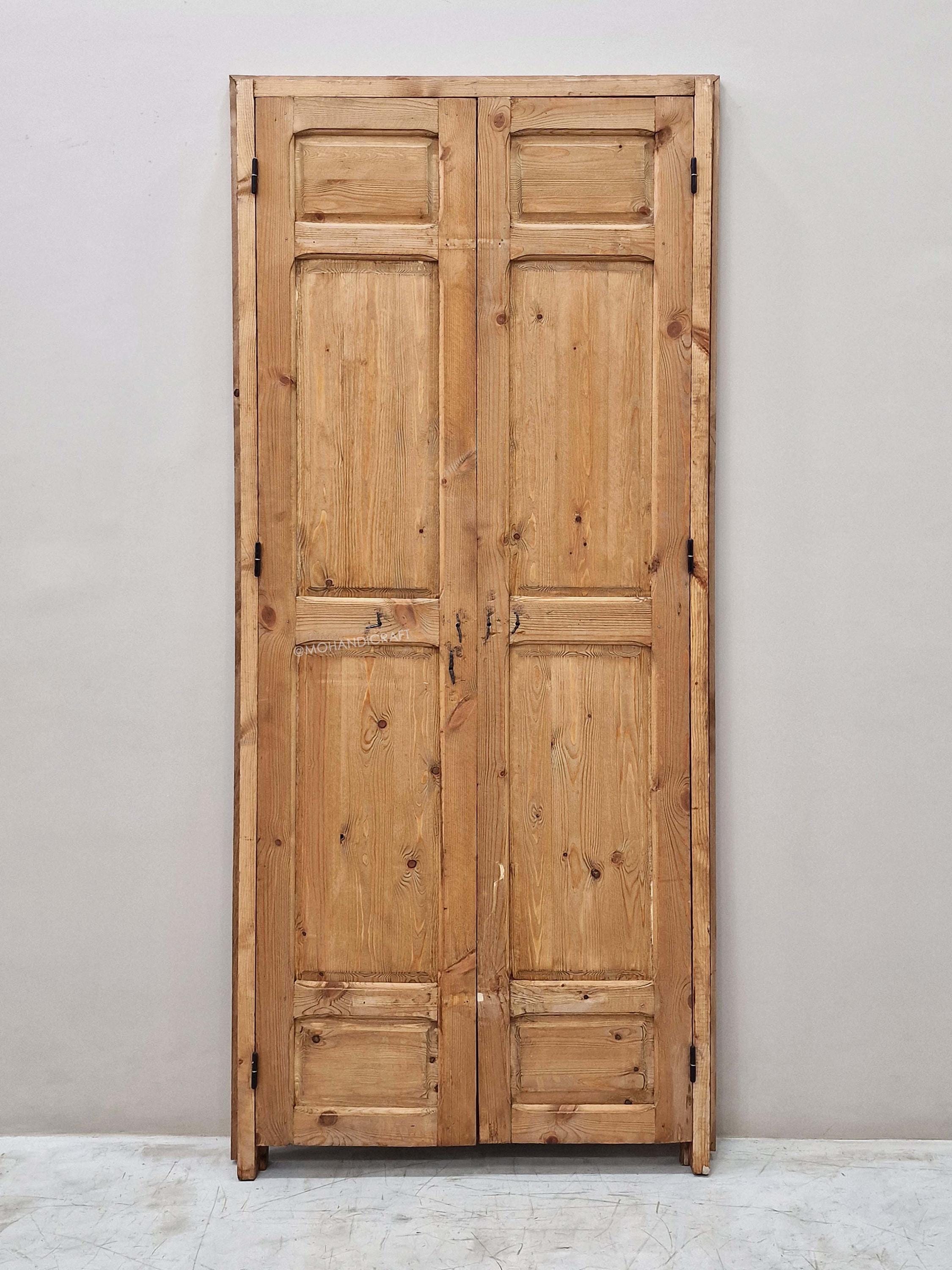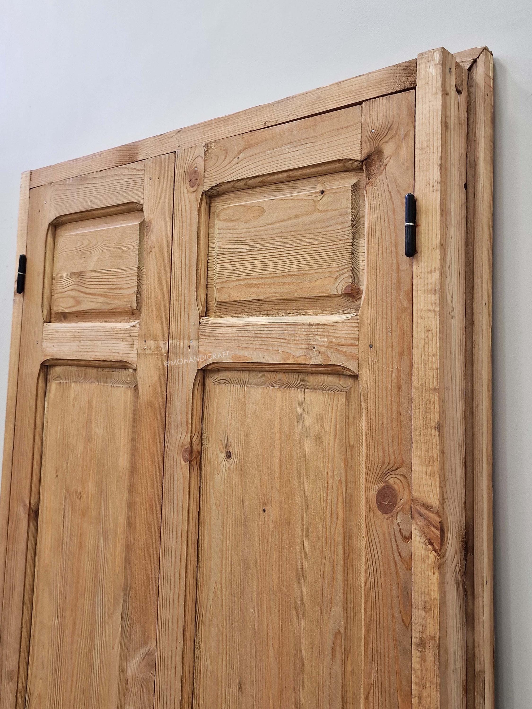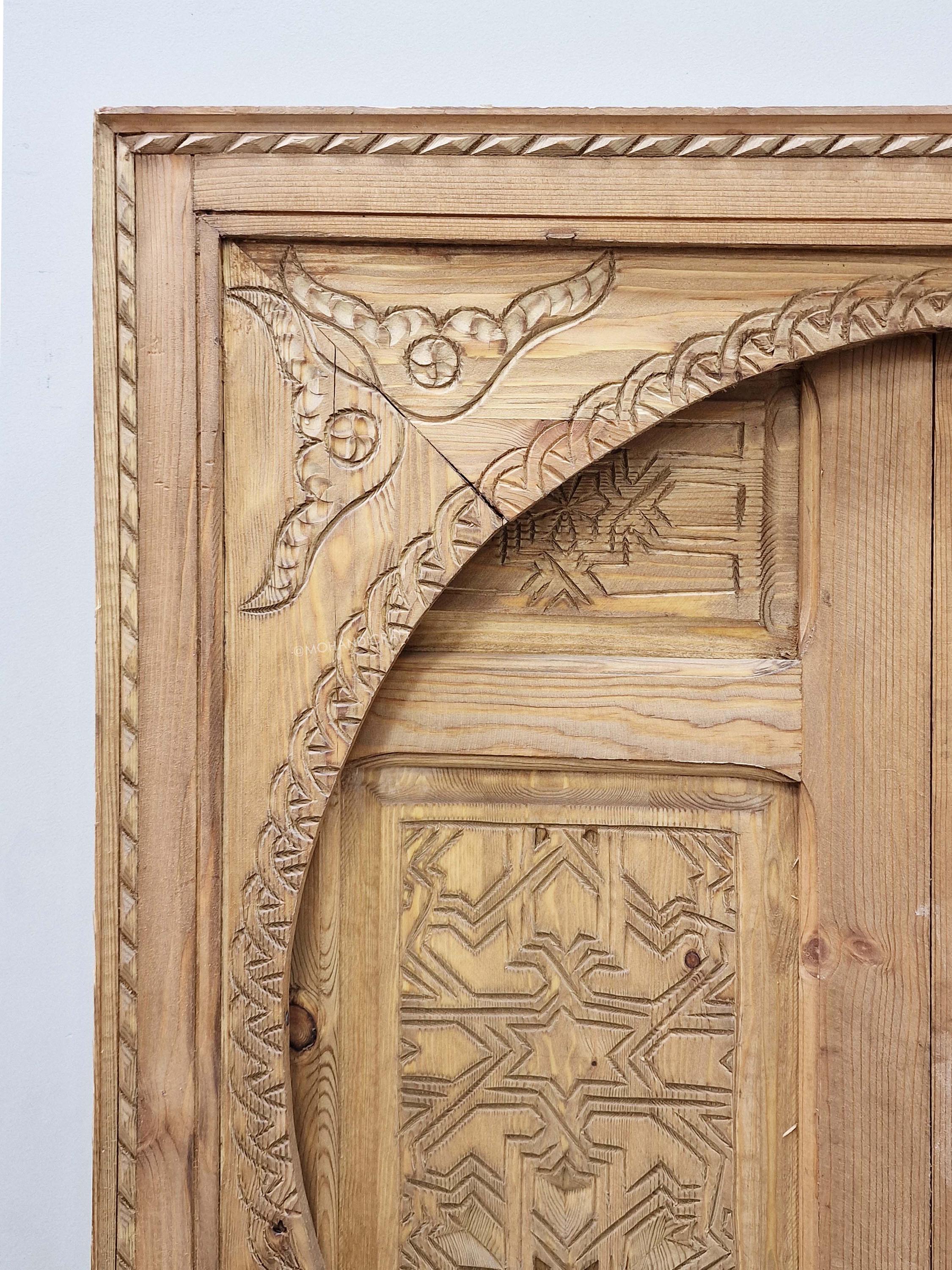Authentic Berber Wood Door, Rustic Moroccan Arched Wall Decor, Hand-Carved Solid Wood Double Panel, Handcrafted Artisan Door.
