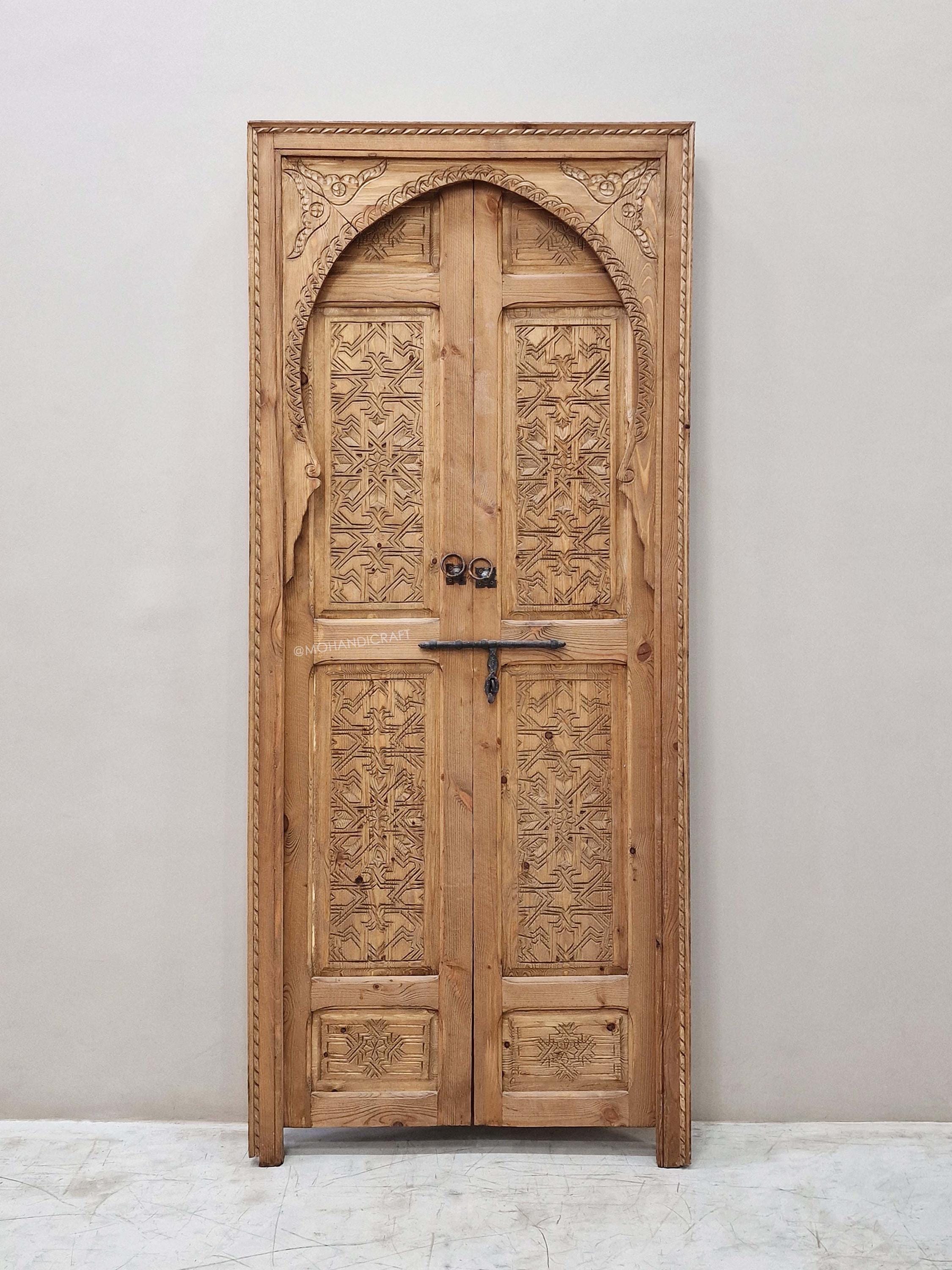 Bring the soul of Morocco into your space with our handcrafted wooden doors, each one a story carved in wood. Born from the hands of skilled artisans, these doors carry the legacy of centuries-old Berber and Moroccan traditions. Every line, curve, and geometric pattern is meticulously carved, revealing symbolic motifs that speak of history, culture, and artistry. The deep, natural tones of the wood evoke warmth and authenticity, turning an ordinary entrance into a centerpiece of elegance and heritage. More than just a door, it is a celebration of craftsmanship—a piece that invites admiration, sparks conversation, and transforms any space into a living gallery of Moroccan artistry.