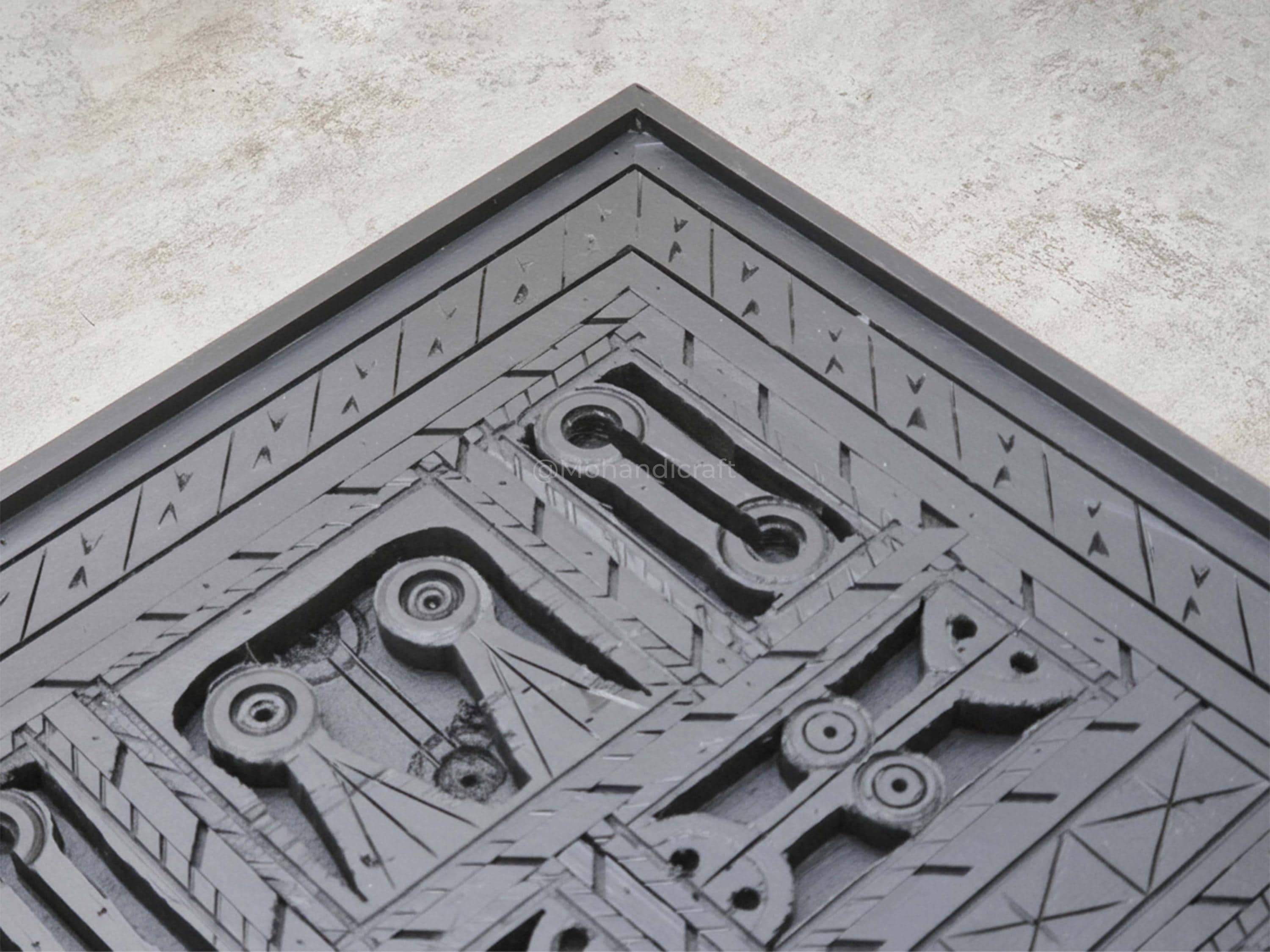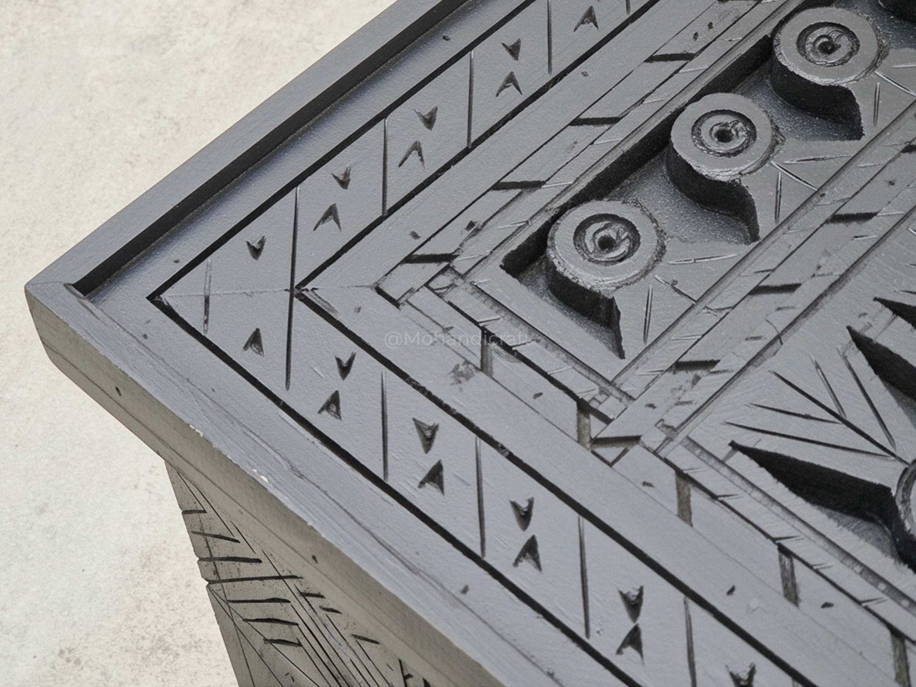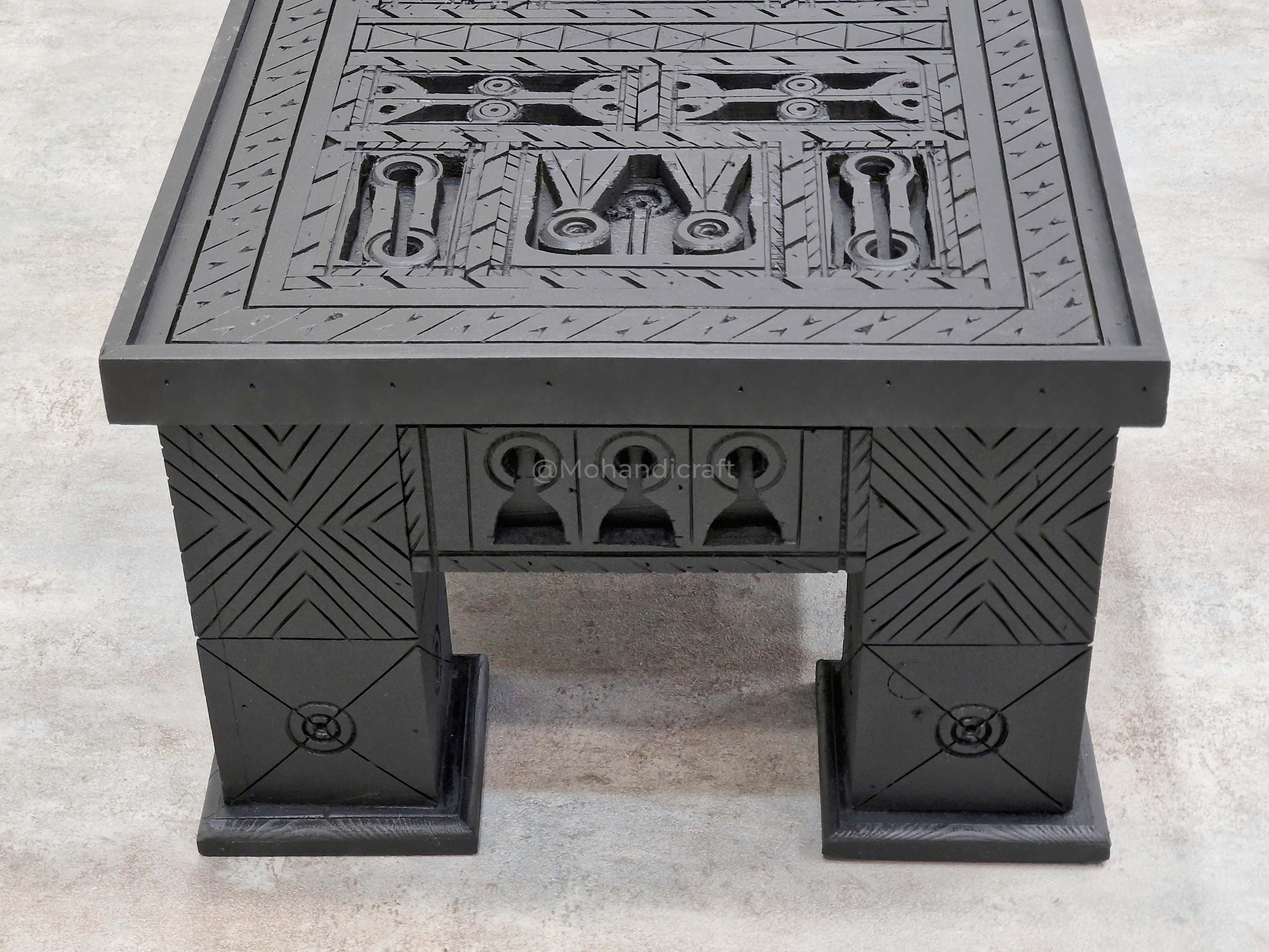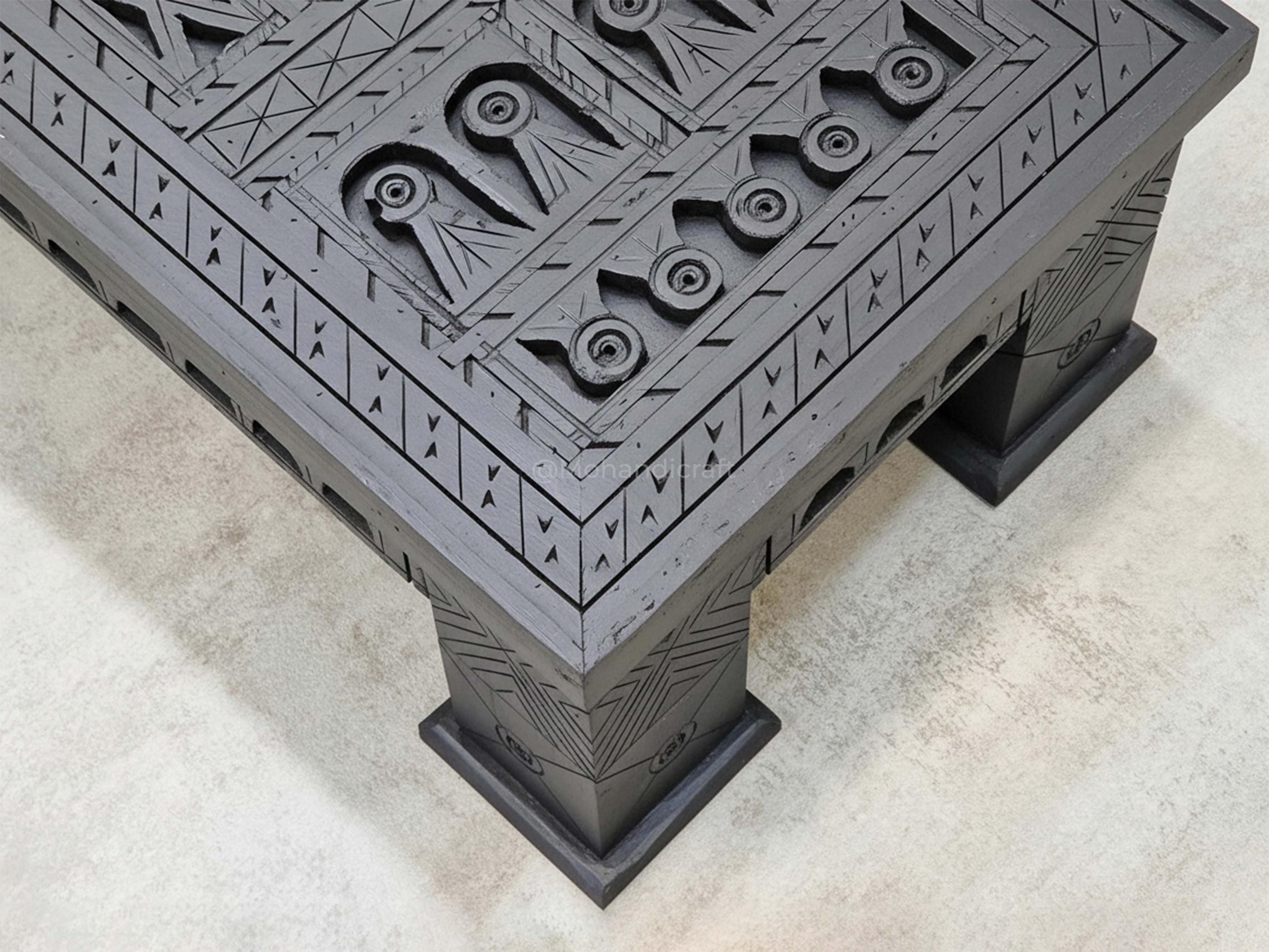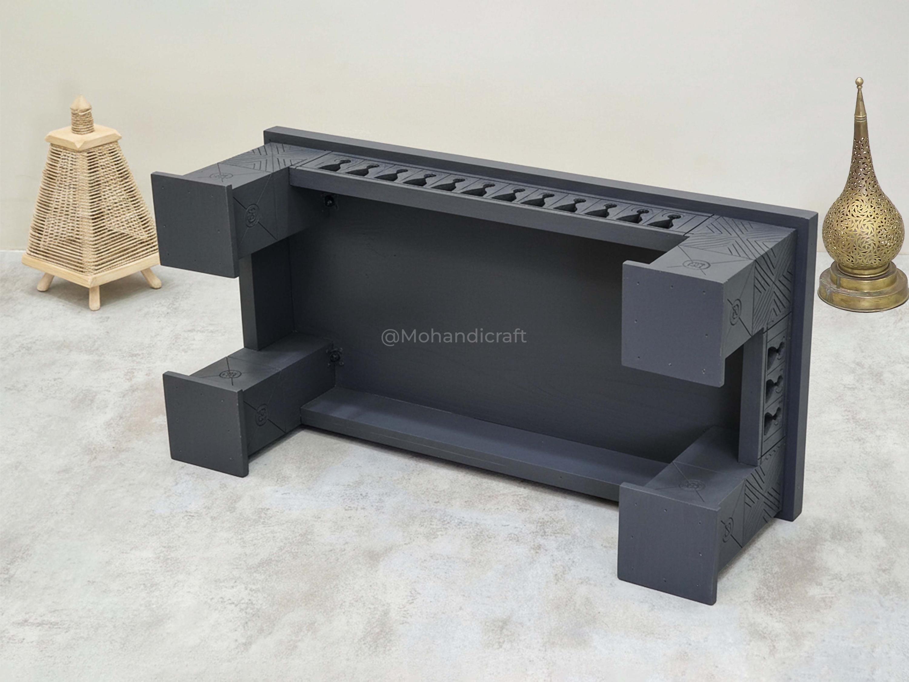 Unique Hand-Carved Moroccan Sofa Table, Handmade Low Coffee Table, Artisan Made Slate Gray Table, Geometric Wooden Table.